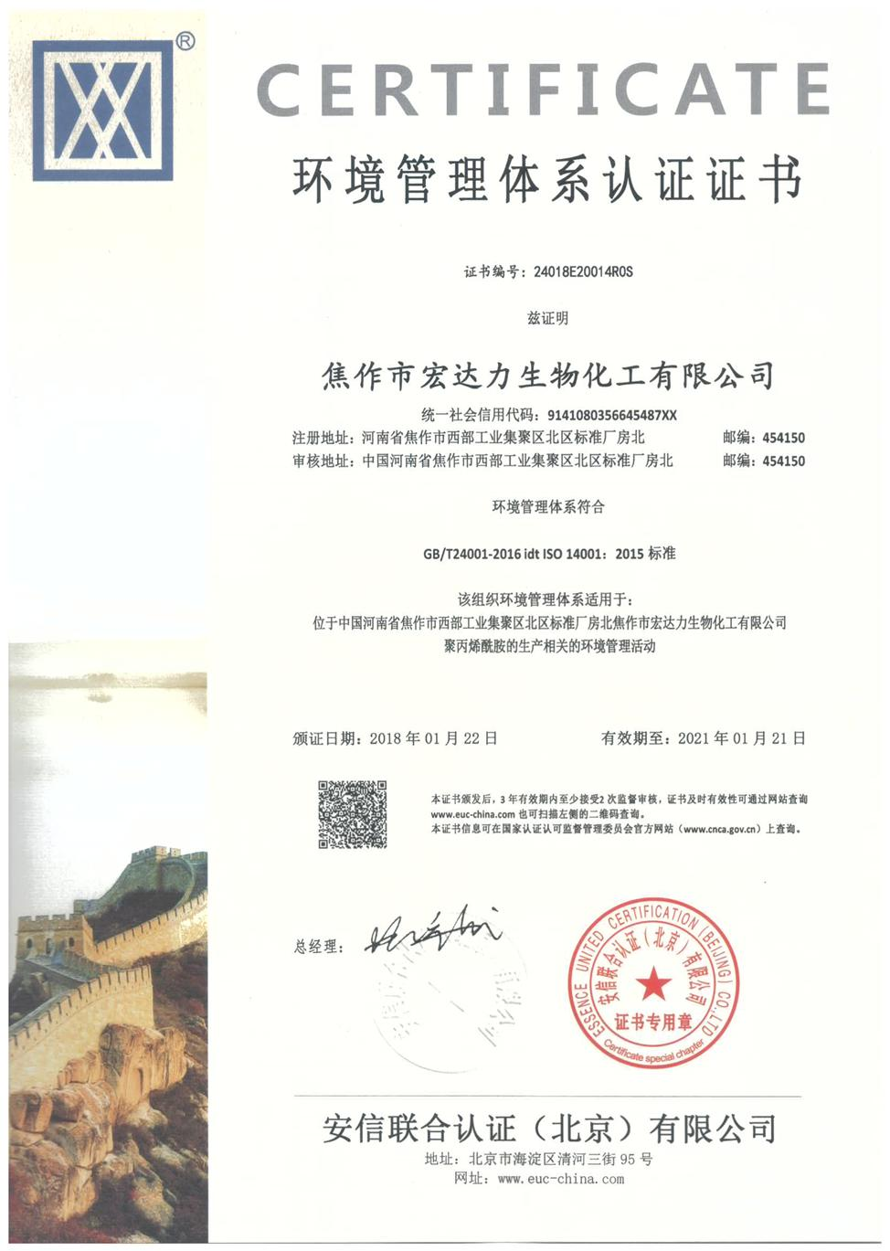 Environmental management system certification